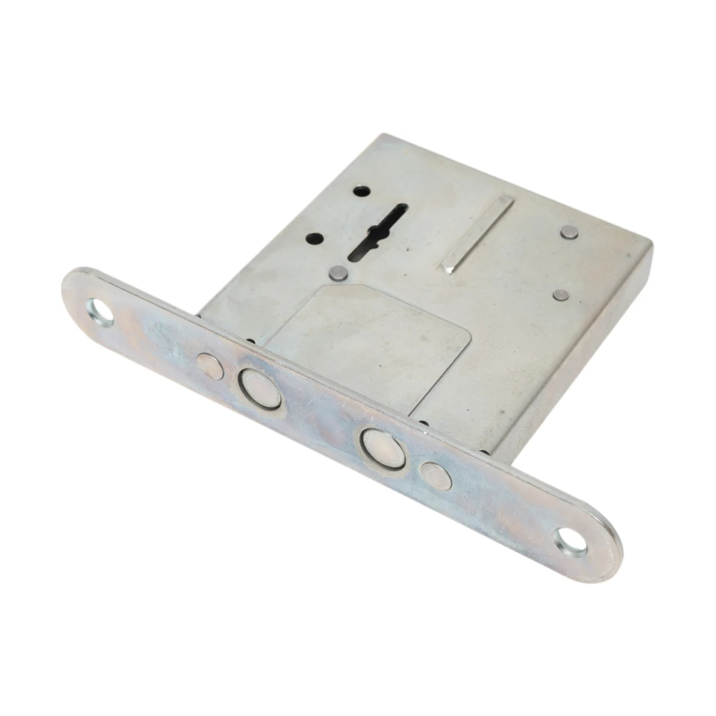 Врезной замок с сувальдным механизмом секрета. Оснащен двумя стальными ригелями диаметром 10 мм. Предназначен для установки в деревянные и металлические двери толщиной до 50 мм.