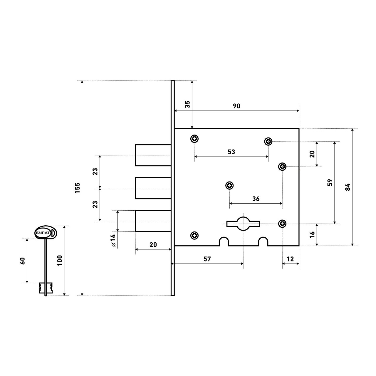 Замок модели «Булат ЗВ8-6.60.00.3(14).08» представляет собой надежный механизм запирания, который обеспечит безопасность имущества и сохранность входа в помещение независимо от его функционального назначения.