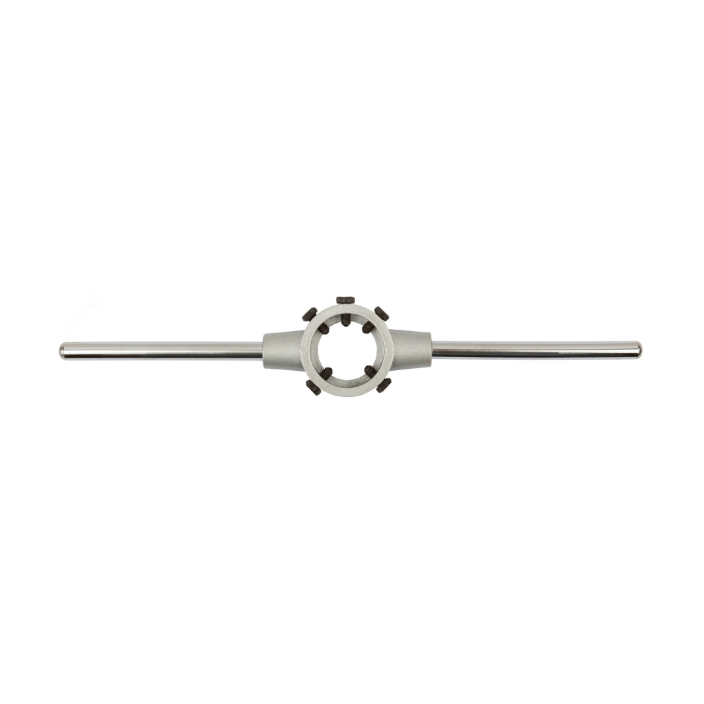 Плашкодержатель FIT IT предназначен для фиксации плашек при нарезании наружной резьбы. Инструмент изготовлен из качественной инструментальной стали, что обеспечивает ему прочность и долговечность. Длина рукояток способствует оптимальному приложению усилий. Рельефные поверхности рукояток на плашкодержателе предотвращают проскальзывание во время работы.
