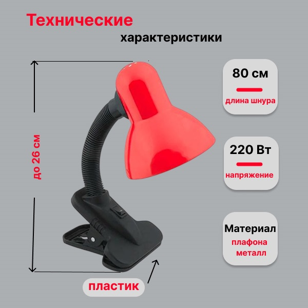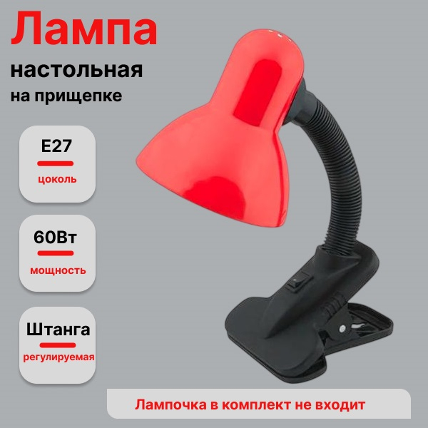Светильник настольный Включай DL-2 на прищепке 60Вт Е27,красный
