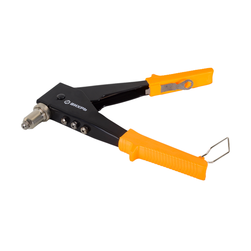 Заклепочник Вихрь 250 мм поворотный 0-90 - ручной инструмент для надежного соединения деталей или нескольких слоев материала. Удобные рукоятки можно сжимать для компактного хранения, специальный замок закрепляет инструмент в сложенном состоянии. Усиленный литой корпус из прочной стали обладает повышенной прочностью и устойчив к деформации и износу. Длина инструмента 250 мм.