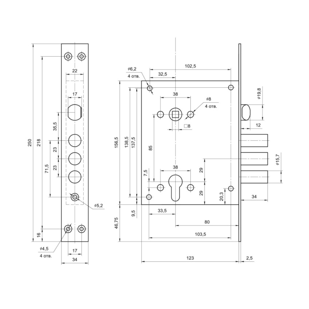 | Удаление ключевого отверстия (Backset) | 80 мм |