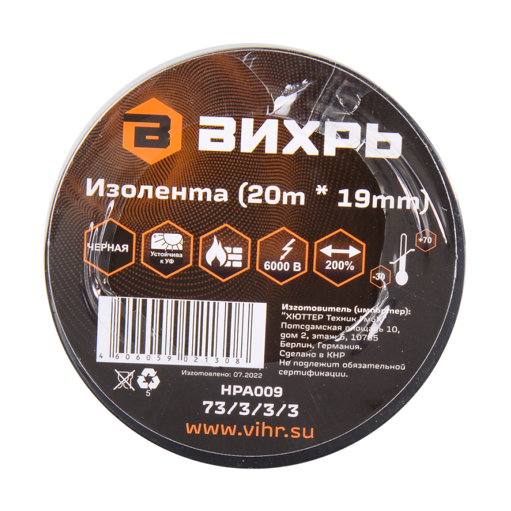 Изоляционная лента Вихрь - изолента профессионального уровня, изготовлена на основе пленки из поливинилхлоридного изоляционного пластиката.