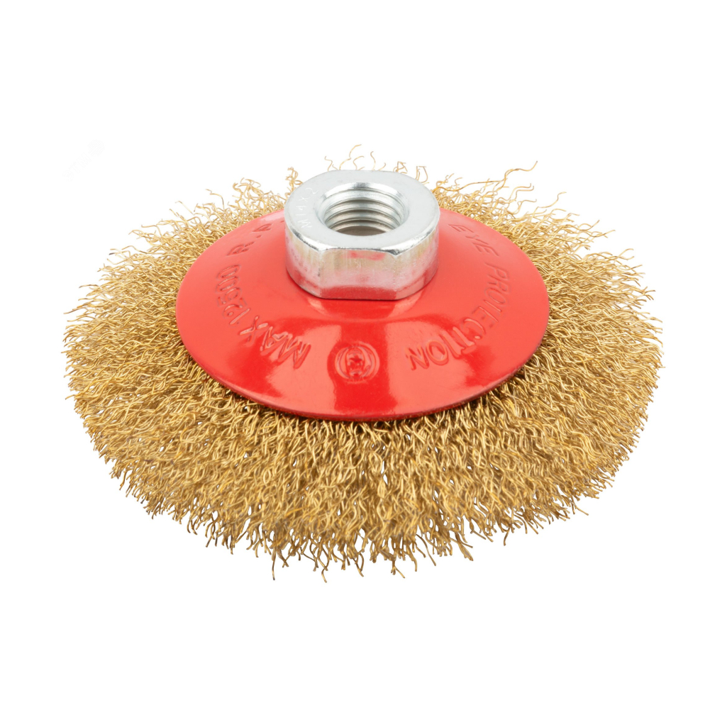Корщетка для УШМ FIT 100 мм, тип "колесо", стальная латунированная волнистая проволока (39050)