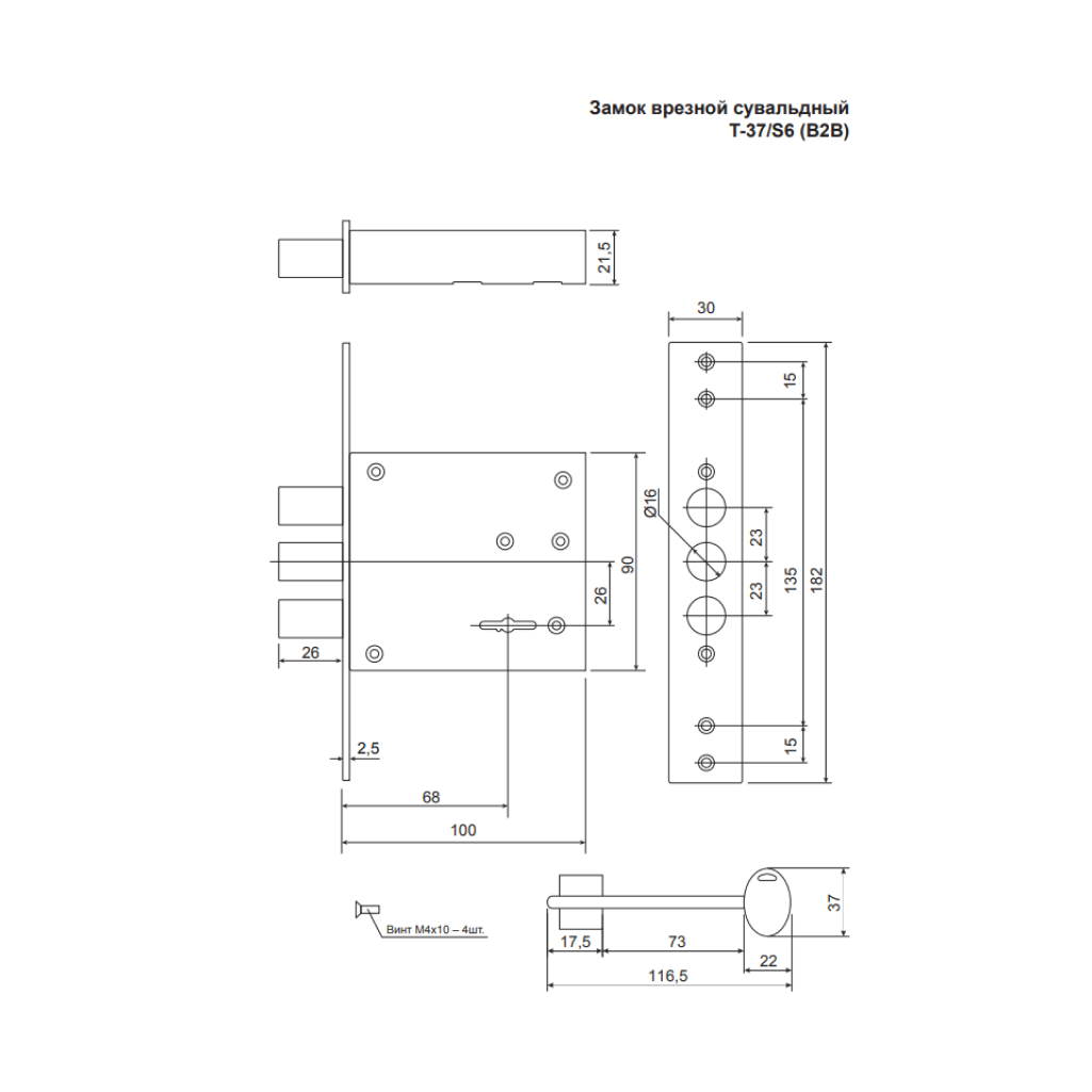Замок врезной Avers ЗВ Т-37/S6-CR (B2B)