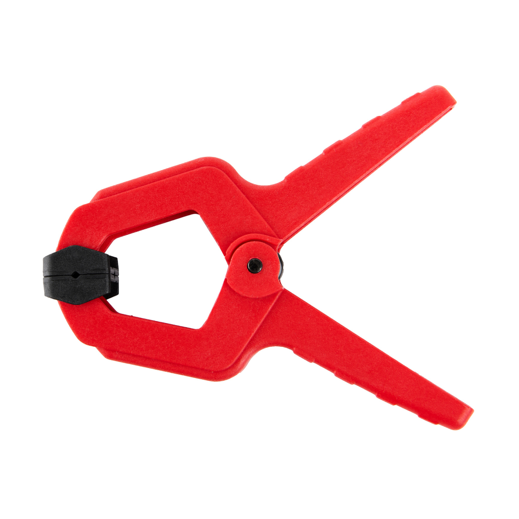 Пружинная пластиковая струбцина ножничного типа с плоскими поворотными губками, с силой зажима 45 Н (4,5 кг), используется для быстрой фиксации деталей и заготовок.