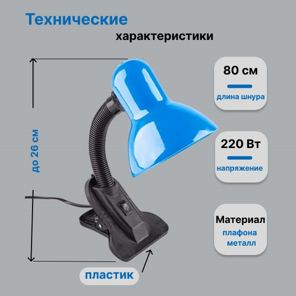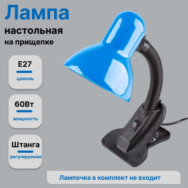 Светильник настольный Включай DL-2 на прищепке 60Вт Е27, синий