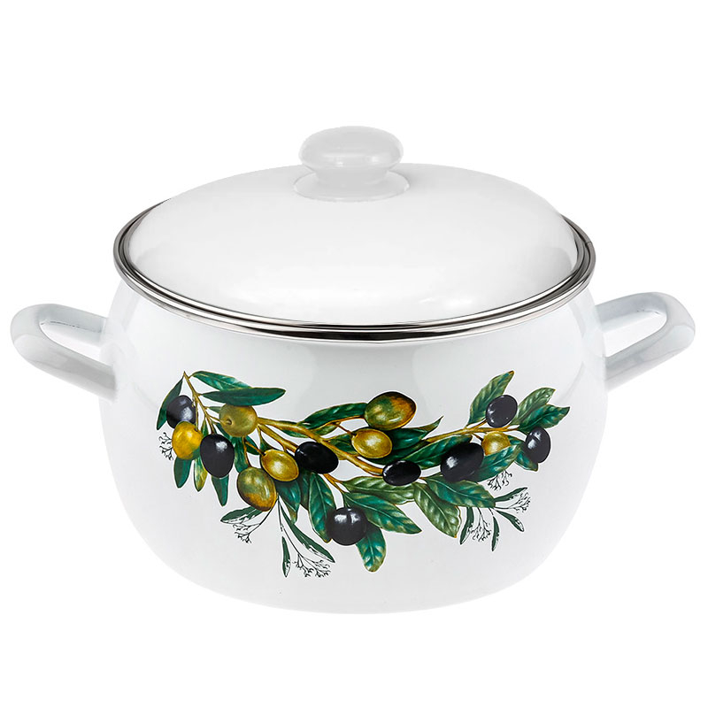 Кастрюля эмалированная Лысьвенские Эмали С-4210АП2/4 сферическая 2л,Оливковая ветвь