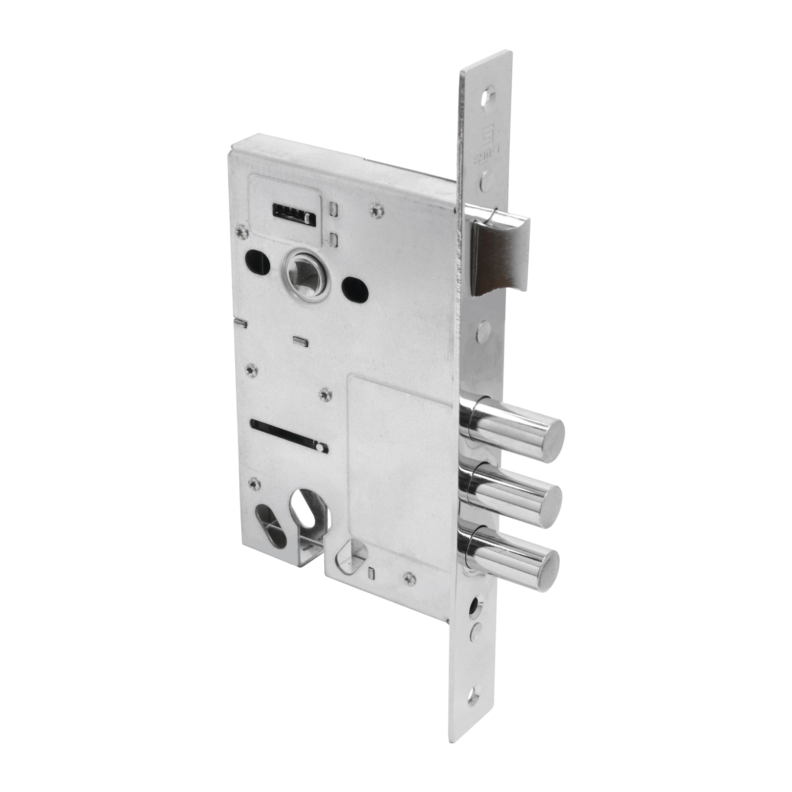 Корпус врезного цилиндрового замка Булат с тремя ригелями и защелкой предназначен для установки во входные и технические металлические двери.