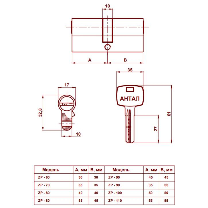 Цилиндровый механизм (личинка) 90 мм Антал ZP-90(35+55)-N,хром