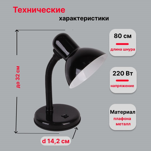 Представляем стильный настольный светильник General GTL027 мощностью 60 Вт с цоколем E27 и черным корпусом.
