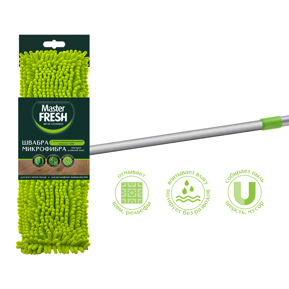 Швабра-флеттер Master FRESH с насадкой из микрофибры с длинным ворсом - это современный, доступный товар для уборки дома.