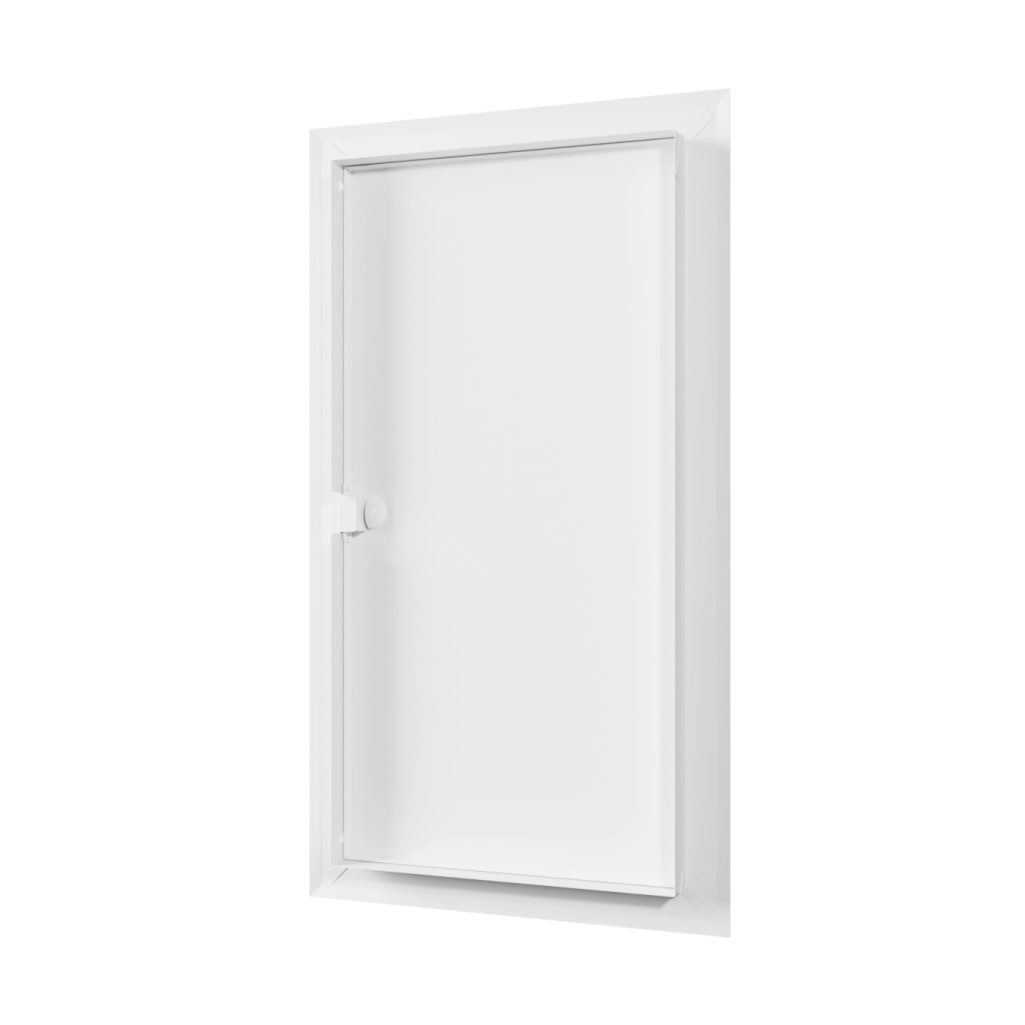 Устанавливается в стену. Оснащен ручкой для удобства открывания/закрывания люка, магнитными замками для фиксации дверцы в закрытом положении и предотвращения случайного открывания. По контуру дверцы имеется рамка, которая скрывает любые неровности проема. Монтаж осуществляется при помощи раствора или клея. Подходит для универсального монтажа с левосторонним или правосторонним открыванием.