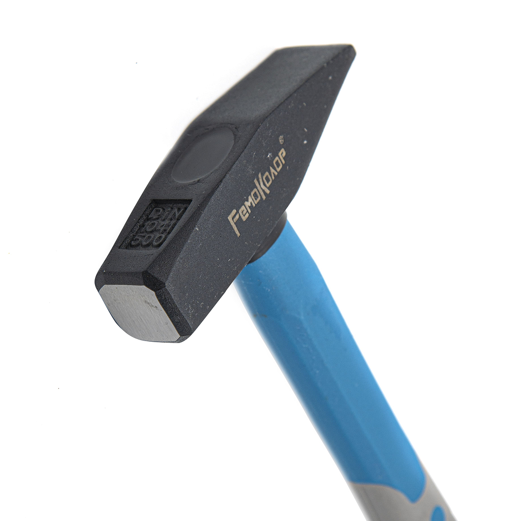 Ручной ударный инструмент используемый для забивания гвоздей, дюбелей и обработки металлических заготовок. Изготовлен из инструментальной стали с антикоррозийным черным лаковым покрытием. Закалка ударных частей 40-45 HRC. Фиберглассовая рукоятка состоит из пластикового корпуса со вставками из термопластичной резины, внутри которого расположен стержень из стекловолокна, для увеличения прочности и повышения безопасности, удобства и скорости работы.