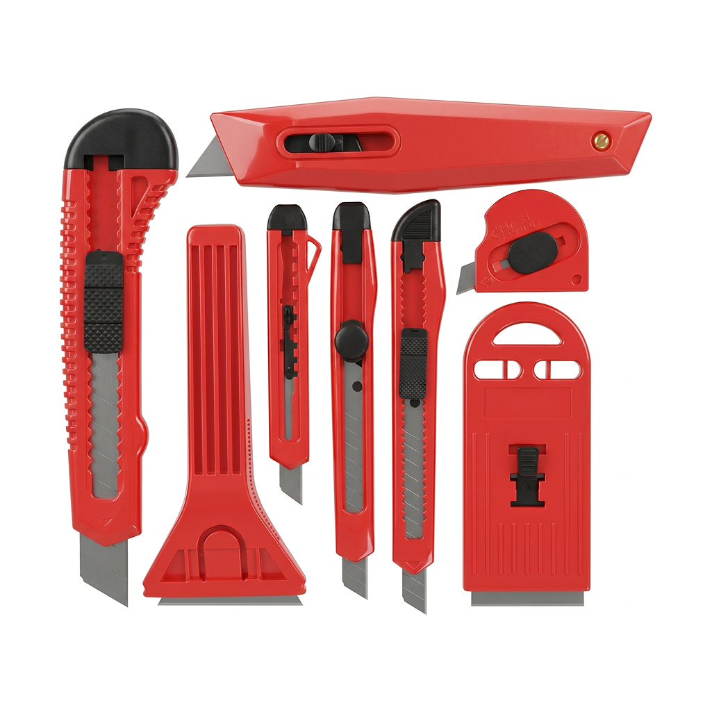 Набор Matrix состоит из 4 ножей с выдвижными лезвиями шириной 9 мм, 2 ножей с лезвиями 18 мм, а также включает 2 скребка с выдвижным и фиксированным лезвиями шириной 40 и 52 мм соответственно. Ножи используются для резки картона, бумаги, обоев и других мягких материалов. С помощью скребков можно легко удалить засохшую краску со стекла или кафеля. Набор будет полезен во время ремонта, а также пригодится дома или в офисе. Преимущества