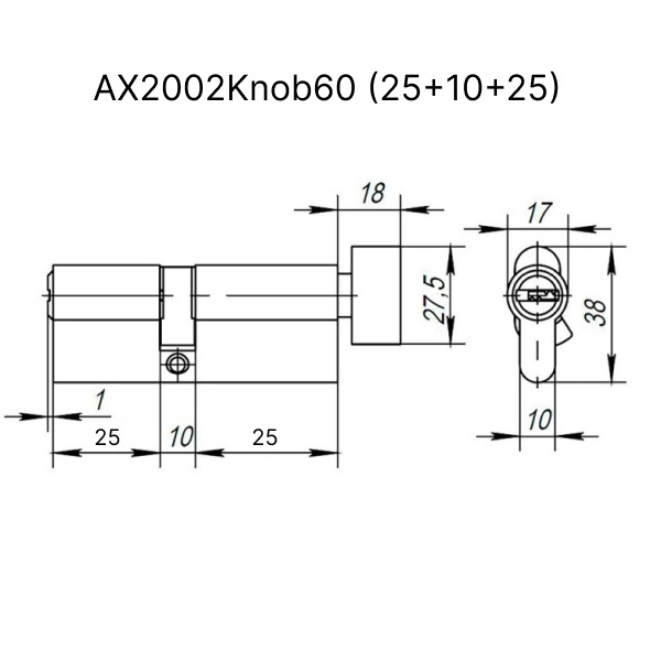 Цилиндровый механизм (личинка) 60 мм Ajax AX2002Knob60 (25+10+25) CP хром с вертушкой