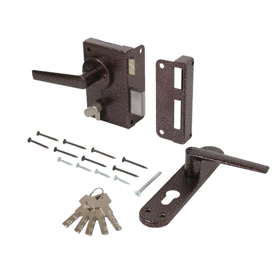 Комплектация: цилиндр с 5 перфорированными ключами,ручки, запорная планка.