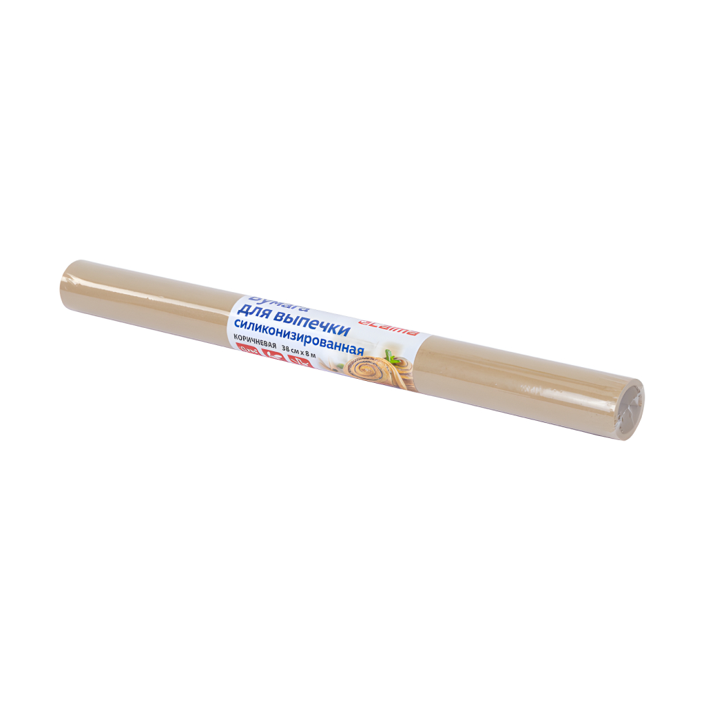 Бумага для выпечки характеризуется высокой степенью жиростойкости и влагостойкости, не прилипает к тесту и форме, а также предотвращает пригорание. Выдерживает температуру до 230 °С. Подходит для многоразового использования. Плотность – 35 г/м2. Размер рулона – 38 см x 8 м.