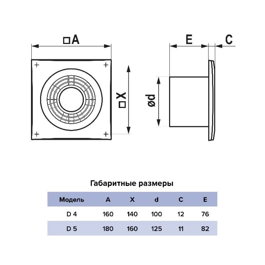 Вентилятор D5 – вытяжной накладной вентилятор. Предназначен для удаления отработанного воздуха из помещения. Подходит для установки в ванную, туалет и другие бытовые помещения. Монтируется в вентиляционные шахты или круглые воздуховоды.