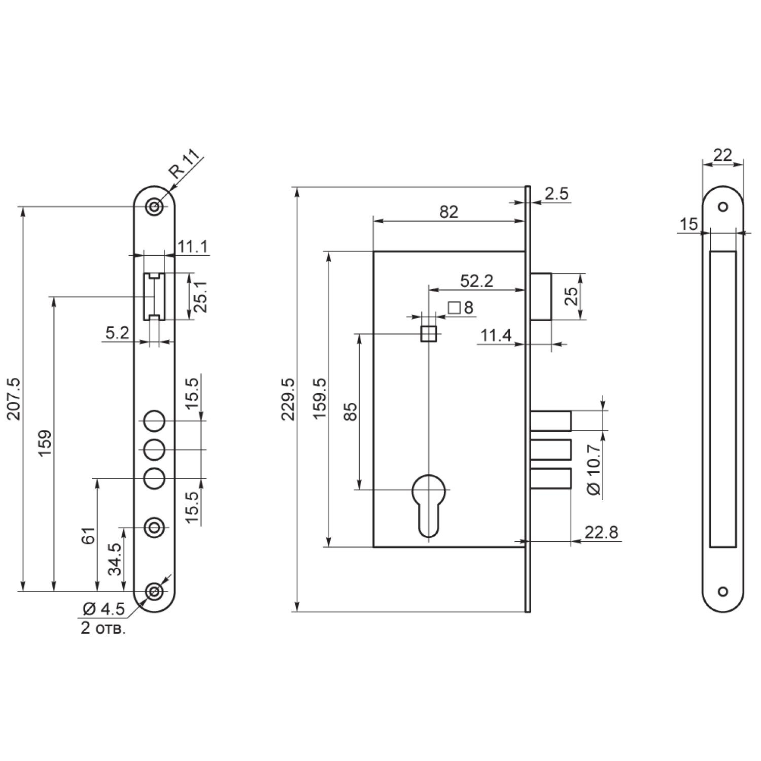 | Удаление ключевого отверстия (Backset),мм | 52,2 |