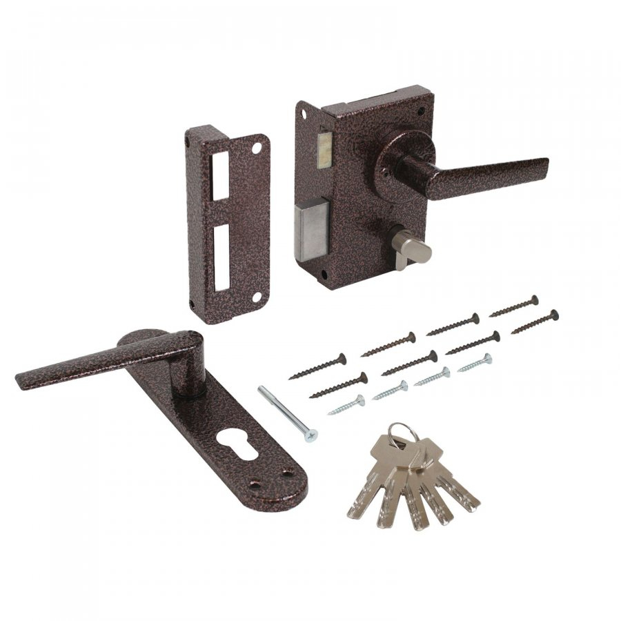 Комплектация: цилиндр с 5 перфорированными ключами,ручки, запорная планка.