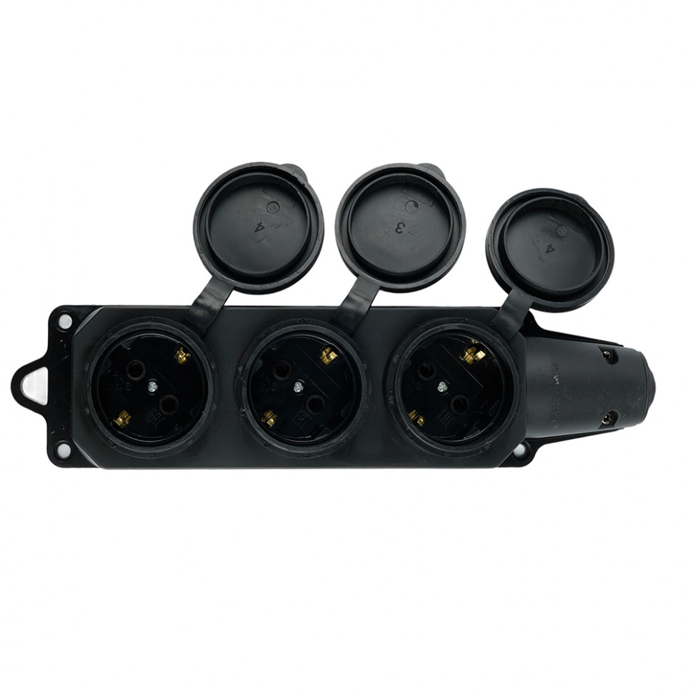 Колодка Stekker 3 гнезда с заземлением, каучуковая с заглушками, черная, RST16-23-44