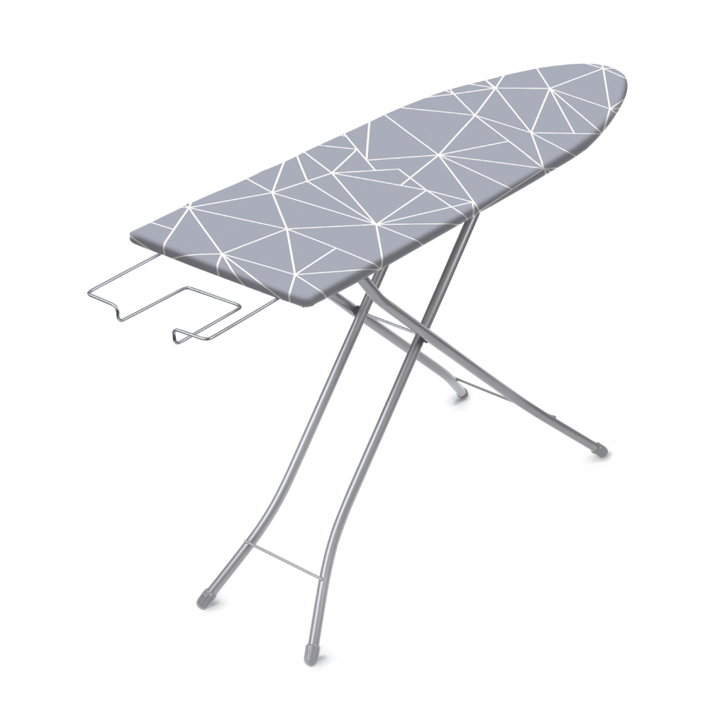Гладильная доска с рабочей поверхностью из ДСП, чехлом из хлопка и выдвижным подутюжником.