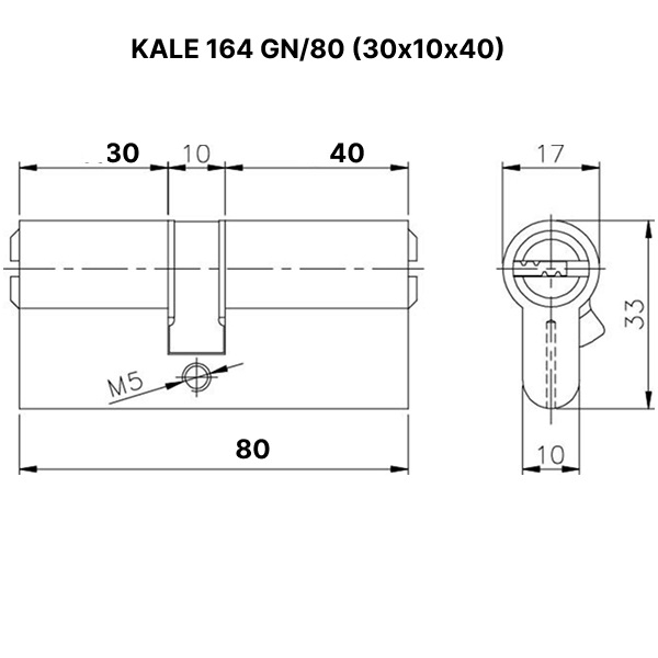 Цилиндровый механизм (личинка) KALE 164 GN/80 (30х10х40)